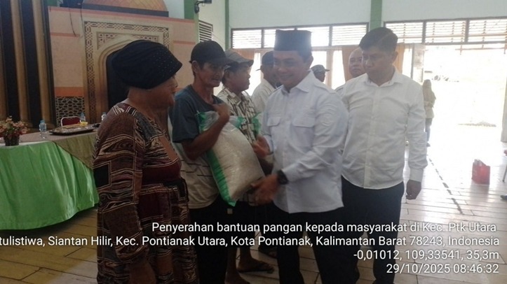Pontianak, 29-30 Oktober 2025 — Berkenaan dengan hari jadi Kota Pontianak yang ke 254, Pemerintah Kota Pontianak yang dihadiri Wakil Wali Kota Bapak Bahasan, SH menyalurkan bantuan beras Cadangan Pangan Pemerintah (CPP) kepada masyarakat di tiga kecamatan Kota Pontianak. Program ini merupakan bagian dari upaya pemerintah dalam membantu meningkatkan ketersediaan pangan keluarga.